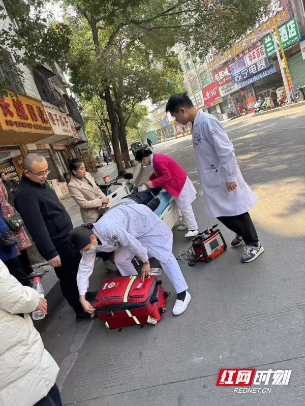 红网时刻新闻2月14日讯(通讯员 杨小珑 邹鹏)近日,一位年仅37岁的男性患者因连续三天劳动后出现胸闷胸痛的症状,前往永州市第四人民医院急诊科求医。经过急诊科医生的详细询问和一系列检查,患者被高度怀疑患有“急性冠状动脉综合征”(ACS)。ACS属于严重的冠状动脉性疾病,威胁患者生命,需要立即住院治疗防止风险发生。然而患者出于个人原因,坚决拒绝住院和后续治疗。任凭医护团队如何耐心相劝,患者依然坚持离院。患者离开医院几分钟后,患者女儿急急忙忙到急诊科告诉杨医生,他爸爸突然倒。杨医生二话不说,启动快反程序,急诊科快速反应小组闻讯而动,迅速准备好抢救物品,火速赶往现场,并同时通知其他相关部门协助。当医护人员赶到患者身边,患者皮肤湿冷,口唇发绀,意识模糊,大小便失禁,血压低至55/32mmHg,血氧饱和度也仅有87%,脉搏摸不到,生命垂危状况极为危急。